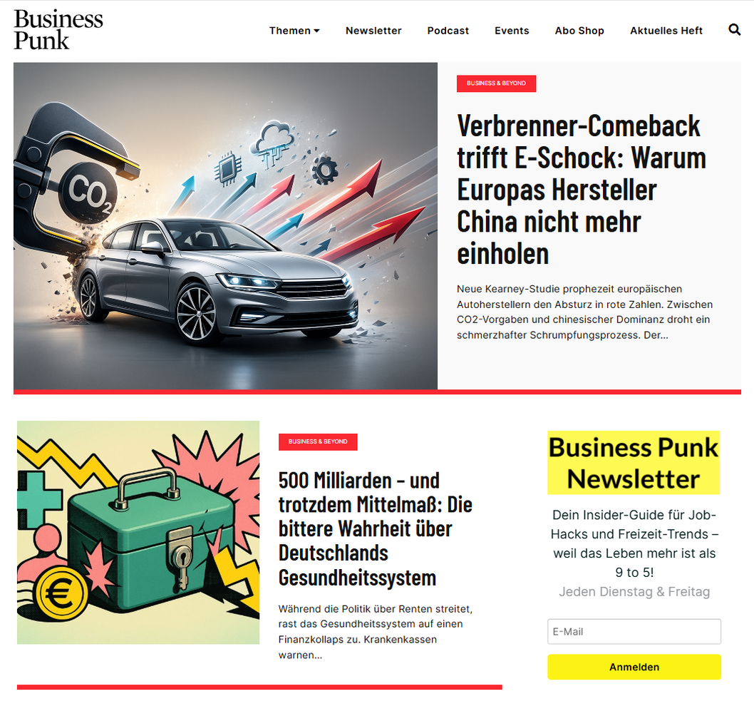 Business Punk ist die 361°-Marke für Menschen, die Wandel gestalten, Grenzen verschieben und Innovation neu denken. Es liefert Impulse, inspiriert und fordert heraus.
