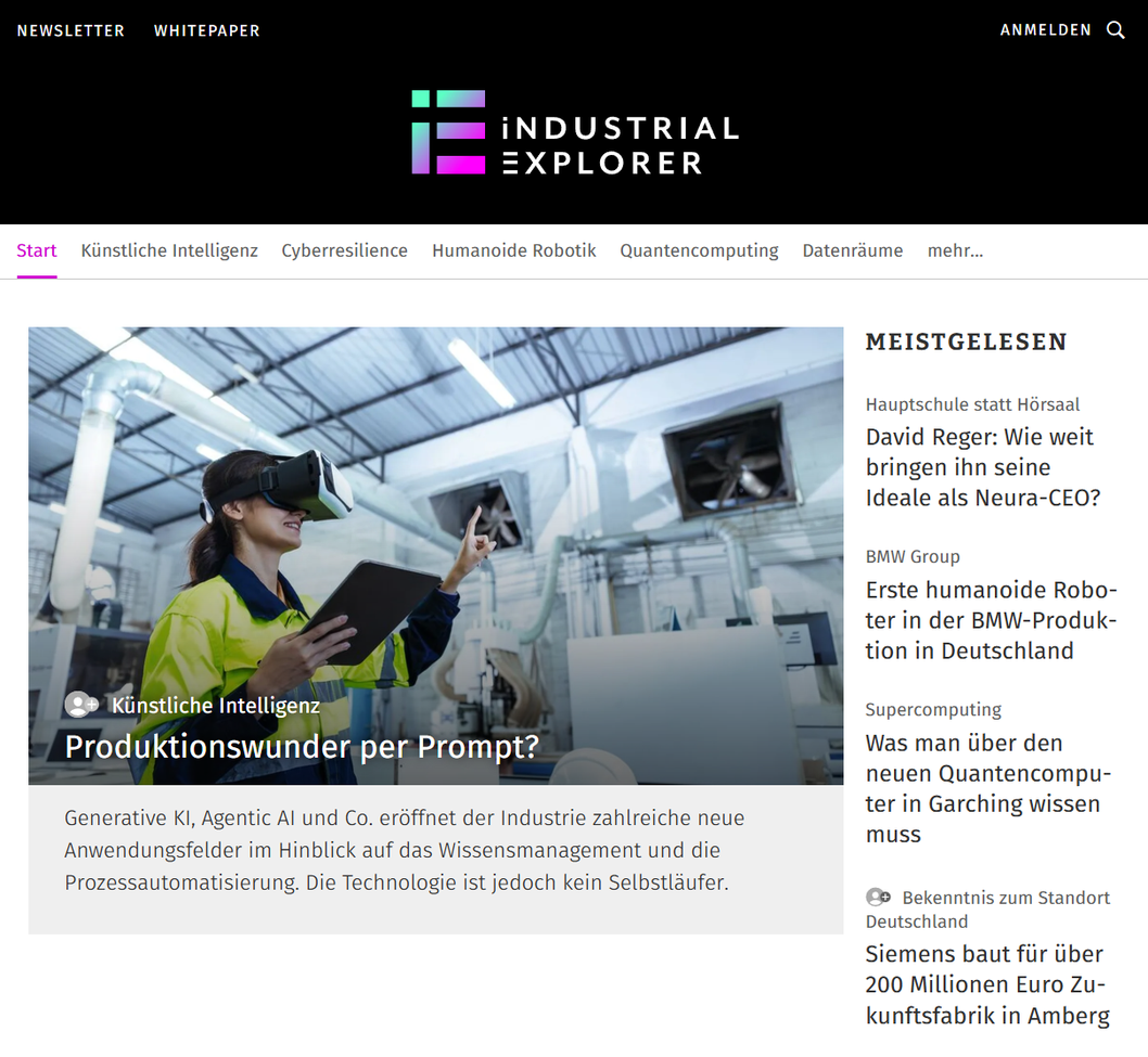 Das Portal für zukunftsweisende Technologien für die Industrie