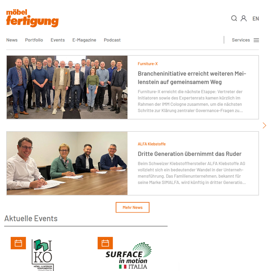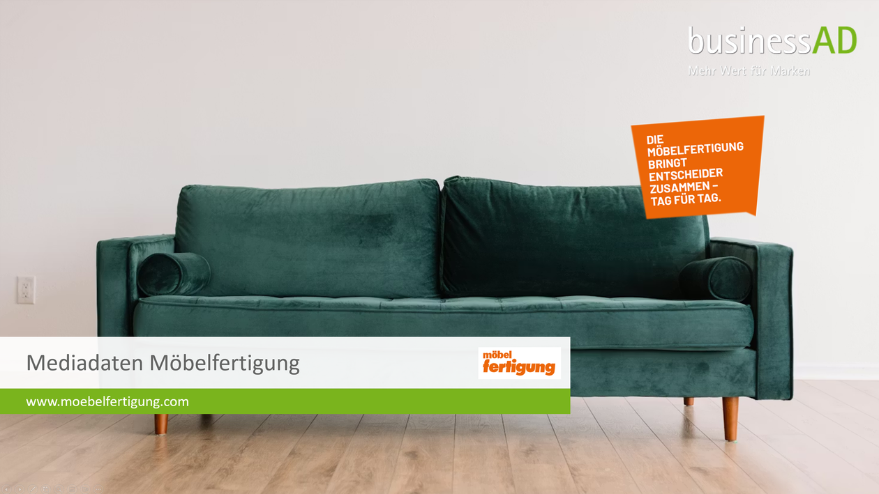 moebelfertigung.com ist das führende B2B-Newsportal der Möbel-, Zuliefer- und Maschinenindustrie und erreicht Entscheider im aktiven Informations- und Entscheidungsumfeld.